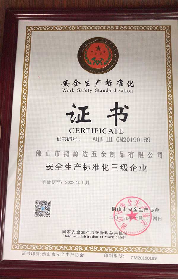 公司一直以誠信、實力、質量的高要求獲得業(yè)界的認可,鴻源達一直以“客戶至上、信譽第一、精益求精、優(yōu)質服務”為經營理念持續(xù)長期發(fā)展,正是因為高標準,高要求,鴻源達五金制品廠受到了廣大客戶的一致認可與好評。